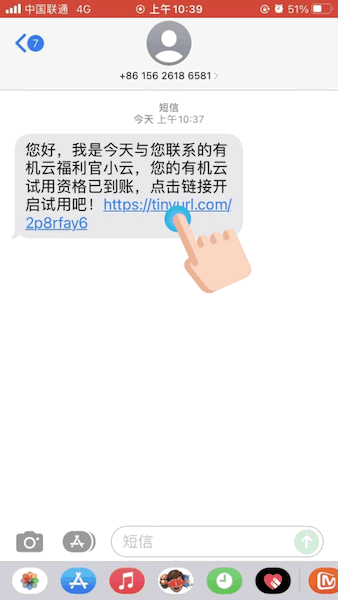 短信中除了含有请求加微的关键信息外,还需加入引流链接,用户点击即可跳转微信加微,十分方便,有效减少客户流失。