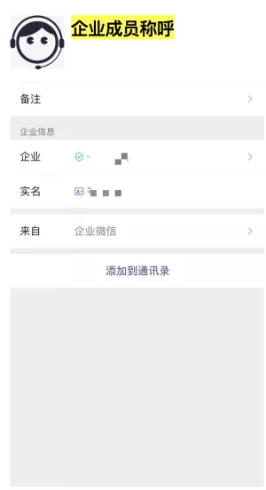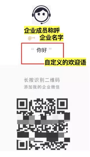 企业成员将联系码附在活动页面时,客户扫码得到的企业成员联系方式如下图一: